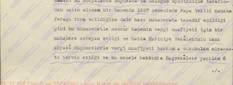 Kaynak: Türk Diplomatik Arşivi (TDA), Ülkeler, Vatikan. 28371-117087, 11.Ocak1929.